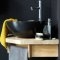 Lave-mains d'angle en teck avec vasque bol noire, de la marque LINE ART